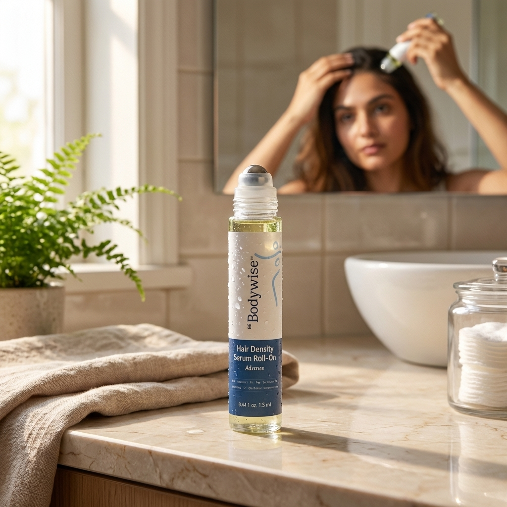 Answer 1: The roll-on design allows for targeted application directly to the scalp and thinning areas, preventing the serum from running and ensuring clinical-strength ingredients reach the roots without any mess.